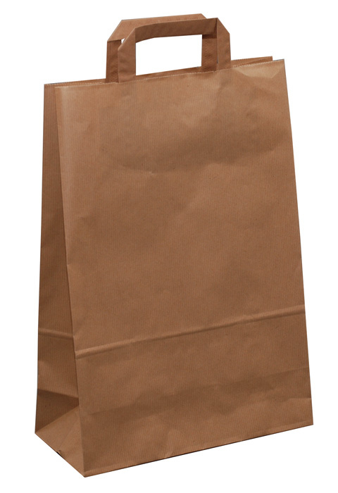 Tašky papírové plochá ucha - hnědá / 260 x 110 x 380 mm
